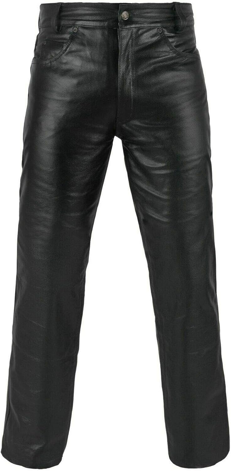 - 100% Genuine Full Grain Cowhide Leather: The most durable leather that can last longer & withstand a great deal of wear & tear. Cowhide leather is soft and supple, comfortable against the skin. Leather pants with a classic, stylish look, natural texture, and grain pattern that gives them a unique, rugged appearance.